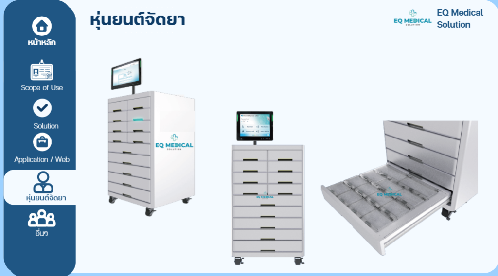 Home Healthcare delivery robot ภาพรวม อุปกรณ์ Healthcare Logistics : หุ่นยนต์ส่งของ เชื่อมต่อลิฟท์ มีระบบล็อคอัจฉริยะFace Door Lockเชื่อมต่อกับ HIS ได้เชื่อมต่อ WMS มีทีม Engineer ซัพพอร์ต รับประกัน 1 ปี สามารถซ่อม ดูแลหลังการขายมากกว่า 10ปี อะไหล่รองรับ 100% ทีม วิศวกรไทย 100% รับตัวแทนจำหน่าย